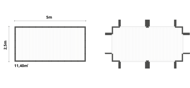• Stützenfreie Vergrößerung des Raumes auf bis zu 200% durch Kombination mit Modul S auf zwei Seiten bei größerem Platzbedarf